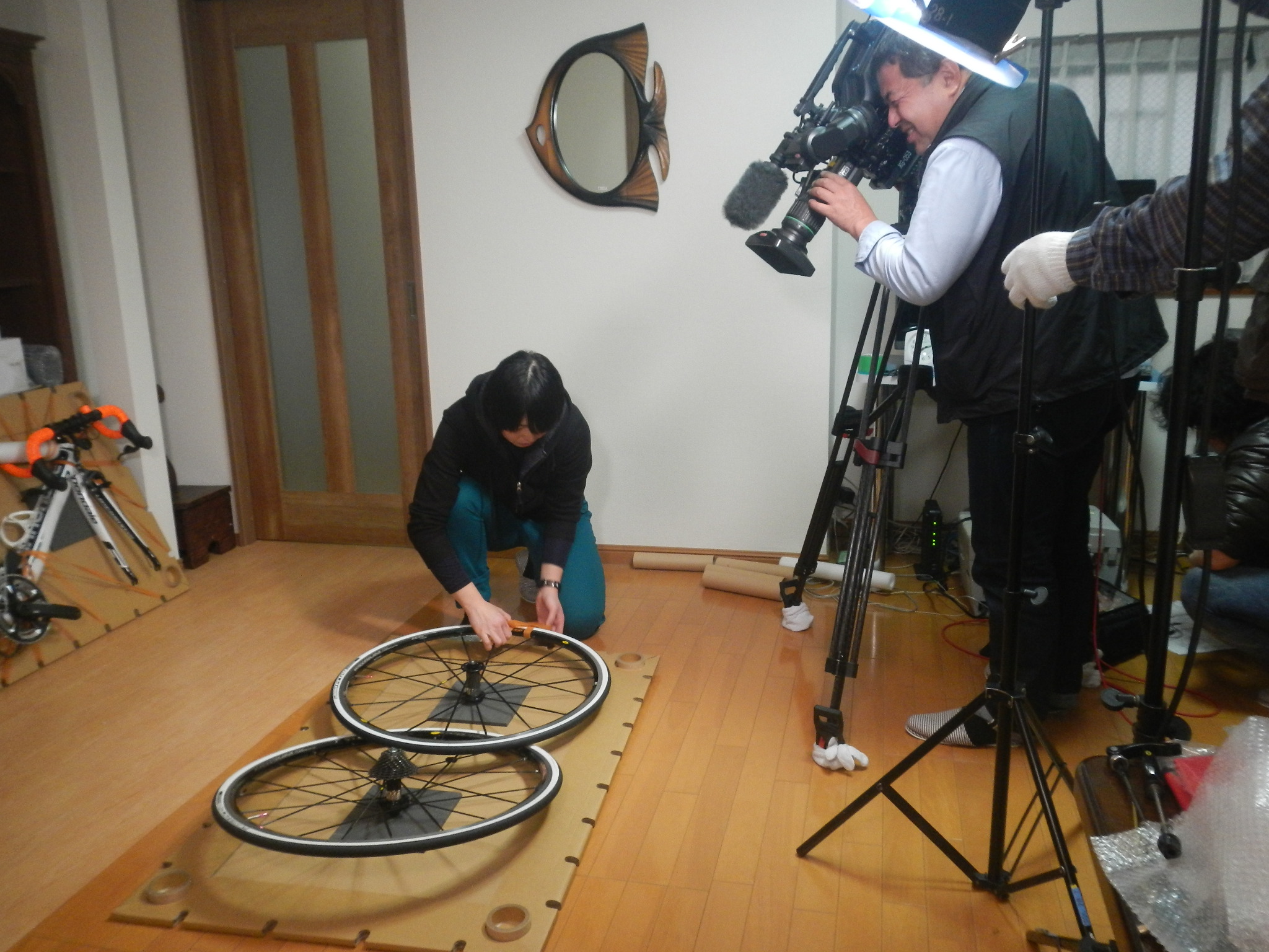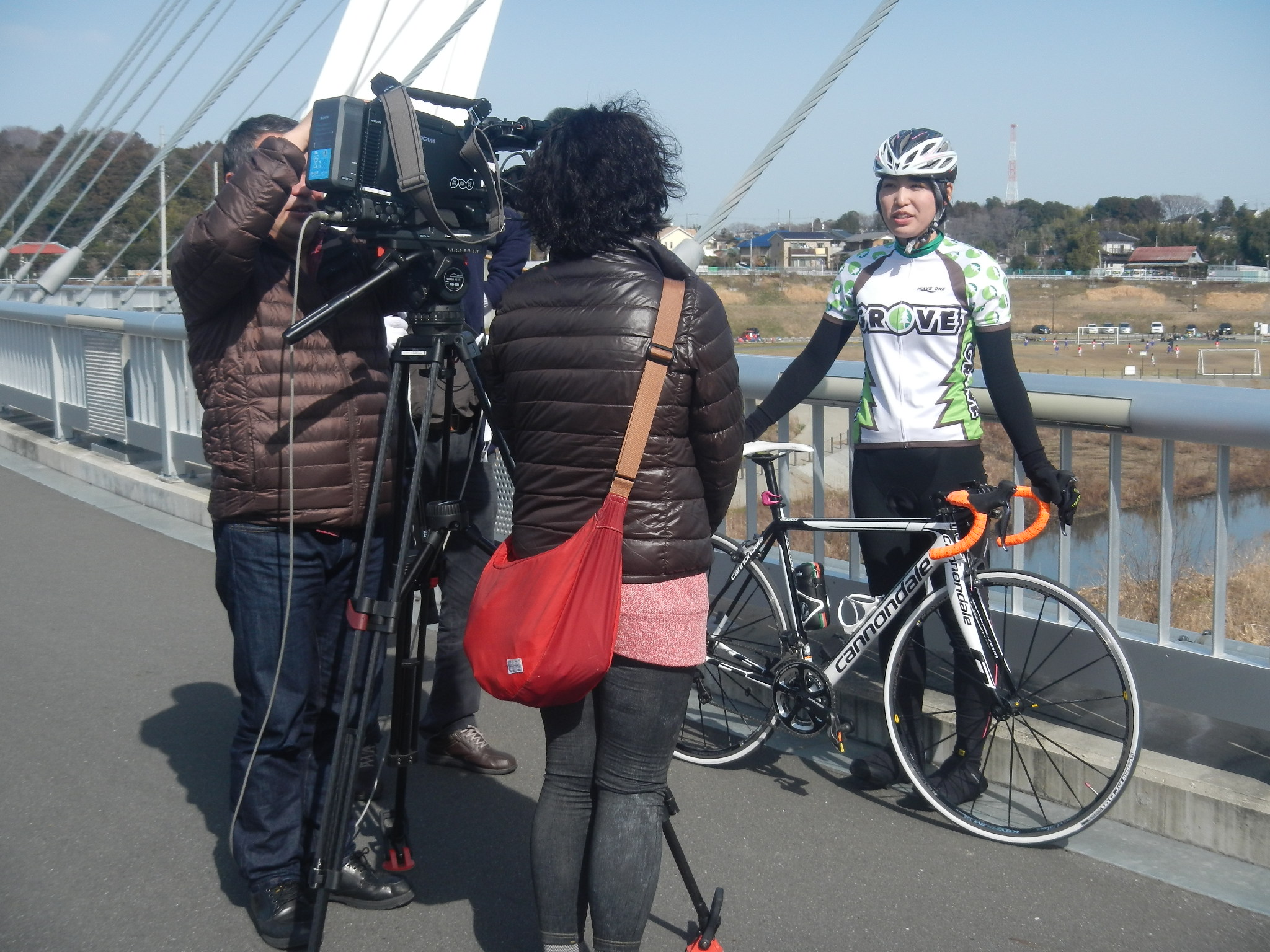 NHKさんから放送したい旨のご連絡をいただいたのが2週間くらいまえで、それからバタバタの連続でありました。今回登場いただいたNさんは神奈川県内の某ショップの従業員さん。昨年からレースをはじめ、先日初優勝しました。自転車の聖地、しまなみ海道へサイクリングへ出かけたり、とてもアクティブに自転車を楽しまれています。バイクサンドを最近使い始めたばかりのユーザーさんです。