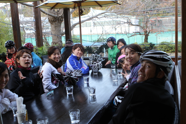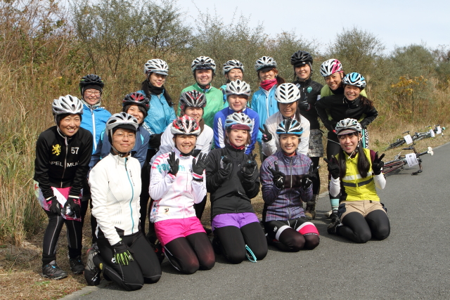 三浦海岸で小休止。ライド中はこれだけの女性だけの集団ってめったに居ないので、本当に目立ってました!