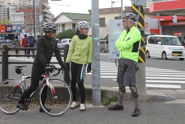 ツーリング船頭役の3名の協力スタッフ。真ん中の人は知る人ぞ知る、元日本代表田崎綾選手。サイクルモードでは、バイクサンドのスタッフとしても、お手伝いしてくださいました。